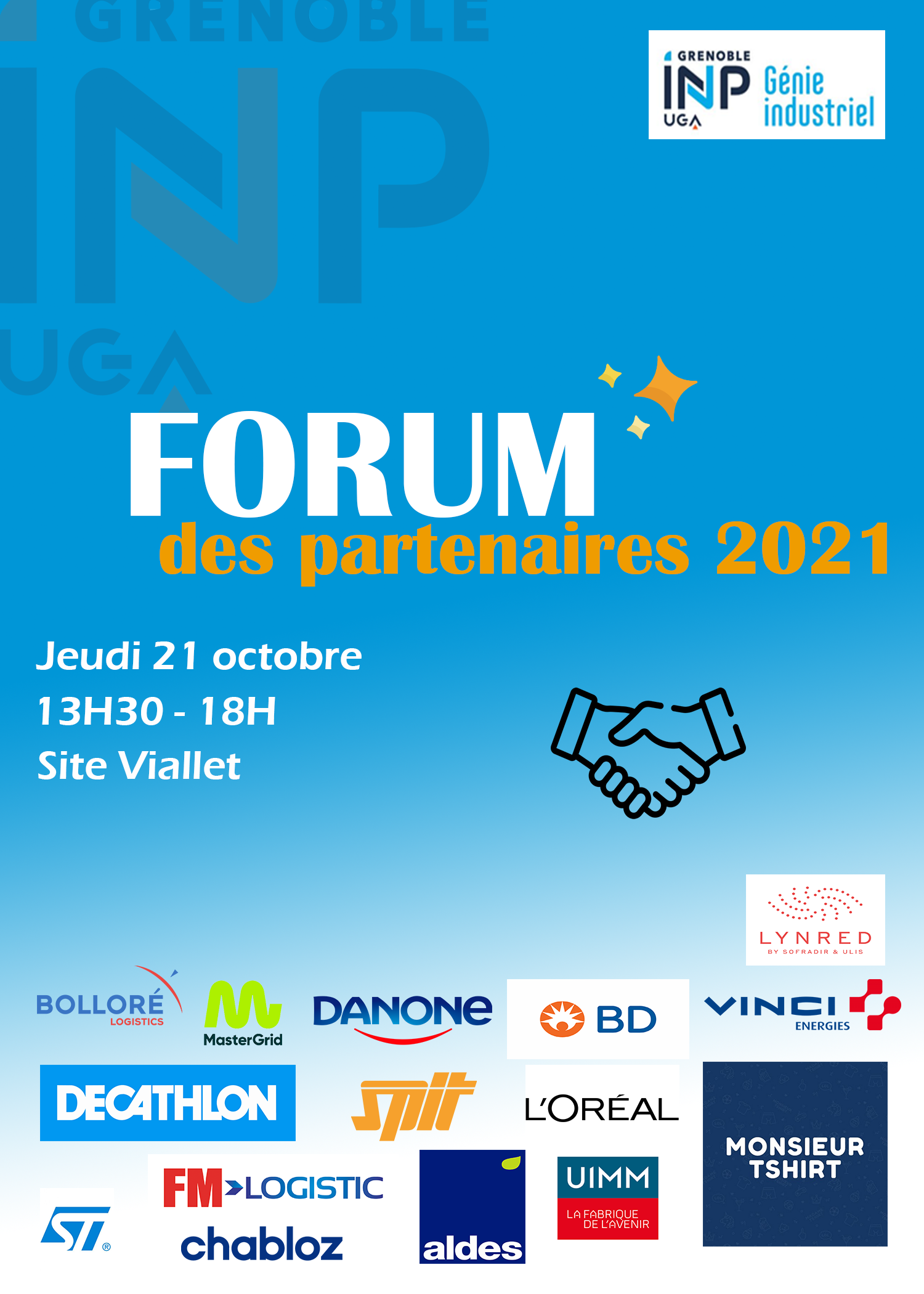Grenoble INP - Génie industriel organise, jeudi 21 octobre 2021, son Forum des Partenaires. Il se déroulera, cette année en format hybride présentiel/distanciel.