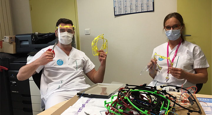 En quelques jours, ce sont déjà plus de 700 des 860 visières produites par les membres du réseau RAFU* élargi à La Casemate, au LOG (Laboratoire Ouvert Grenoblois), au groupe Gre-Nable et quelques particuliers, qui ont été livrées aux CHU Nord et Sud de Grenoble. Le grand élan de solidarité qui s’est formé autour des moyens de fabrication additive dans tout le bassin grenoblois ne faiblit pas et s’organise pour tenir dans la durée.